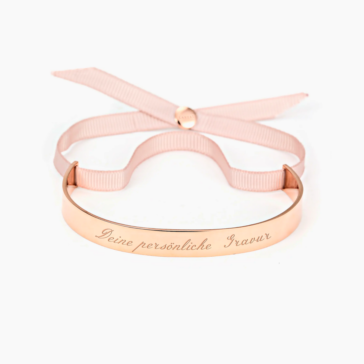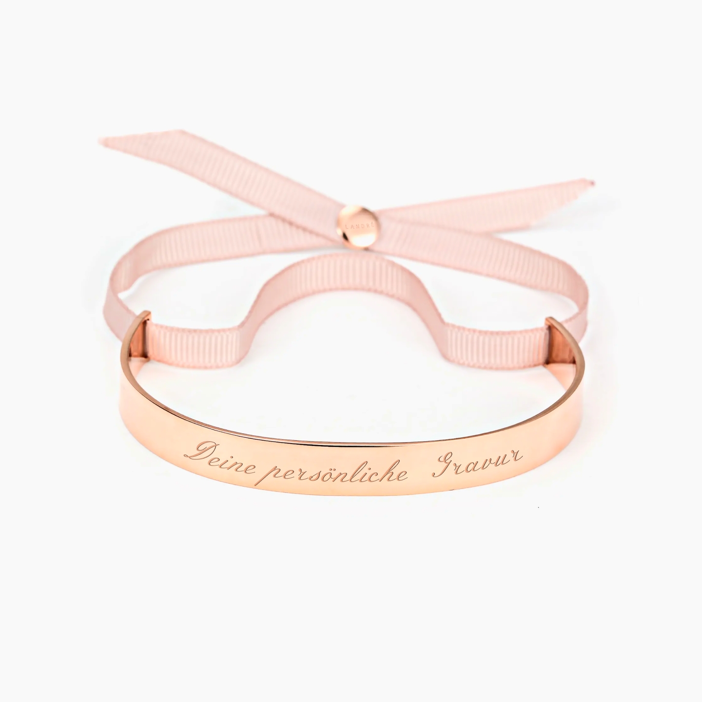 Hochwertiger Edelstahl, 18-karätiger Vergoldung; feines Satinband